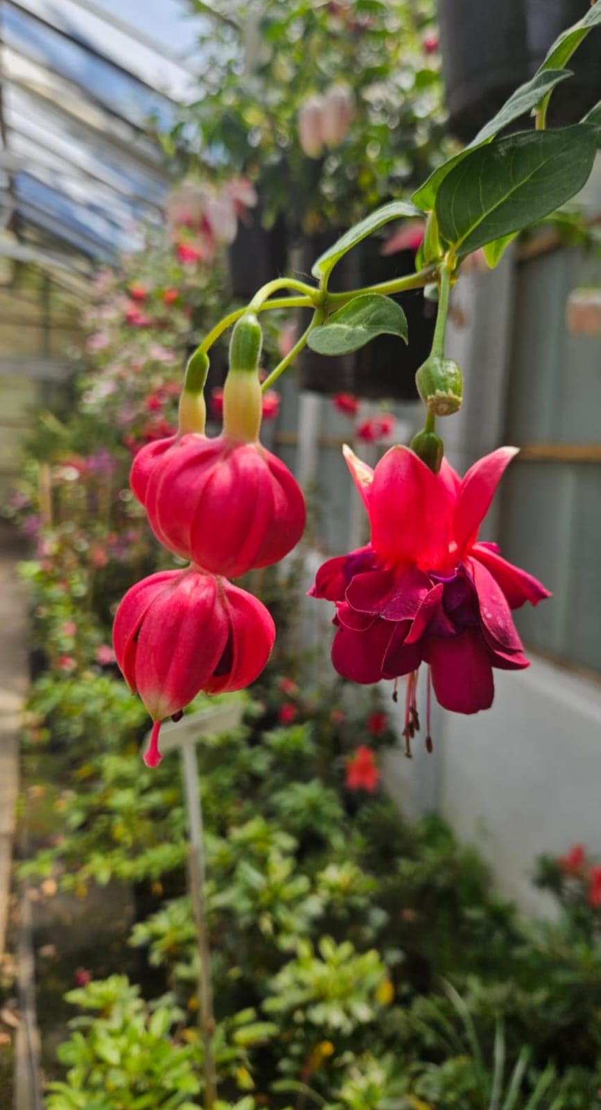 Arbusto perenne de porte erguido y elegante, muy apreciado por su abundante y prolongada floración. Sus hojas son ovaladas, de color verde brillante y bordes ligeramente dentados. Produce flores colgantes, en tonos rojos y púrpuras que atraen colibríes y polinizadores.
