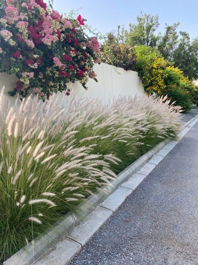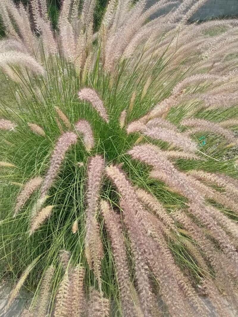 Gramínea ornamental de matas arqueadas con espigas largas y plumosas que aportan movimiento y volumen al jardín.