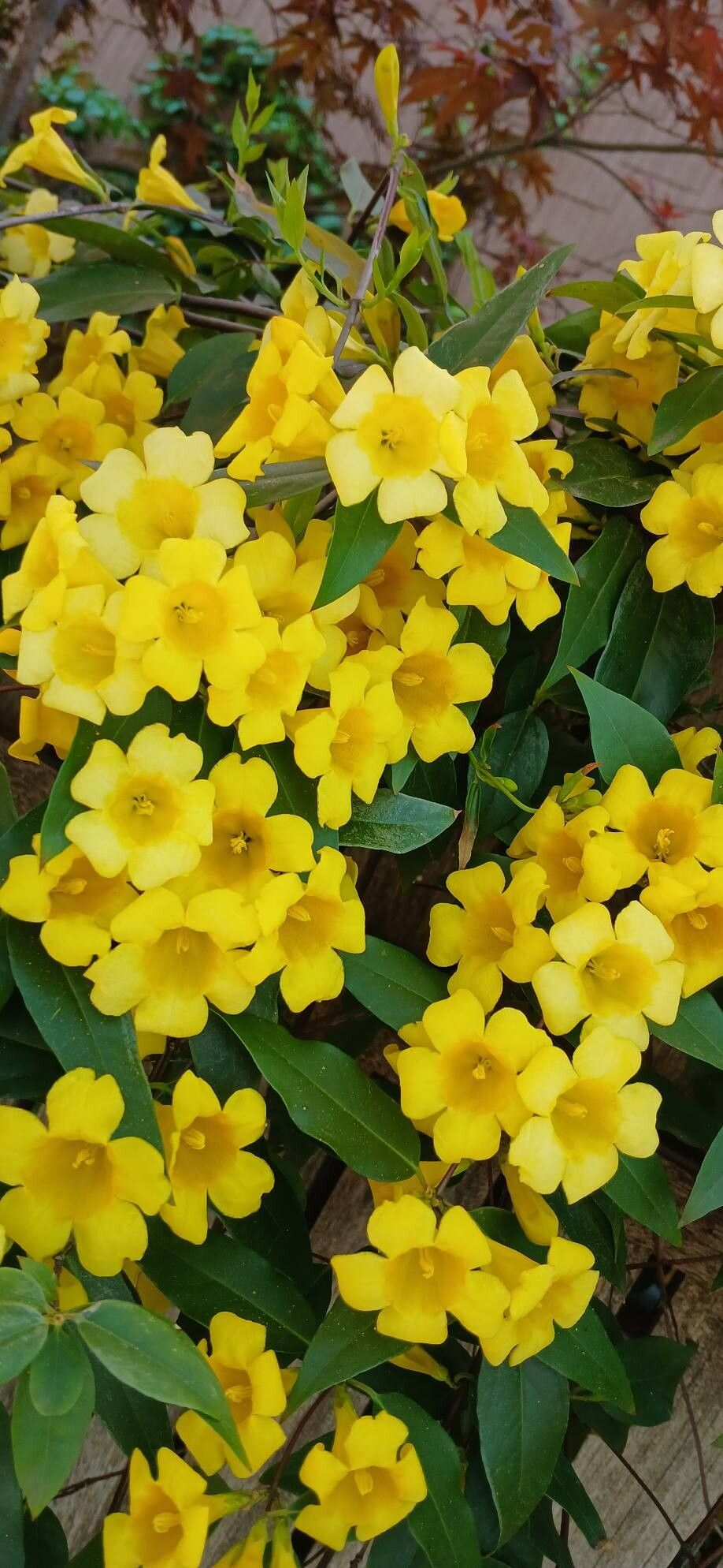 Arbusto trepador de floración prolongada, resistente y fragante; ideal para muros y pérgolas soleadas.