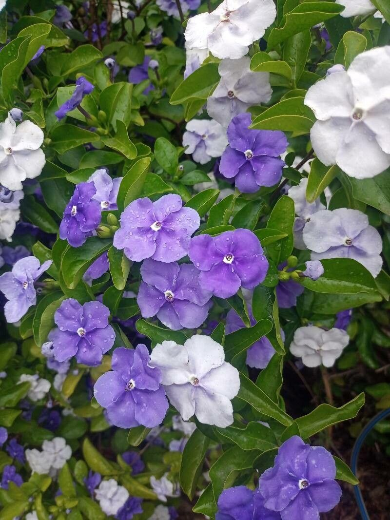 Planta arbustiva con flores que cambian de color, de violeta a blanco; muy ornamental y aromática.
