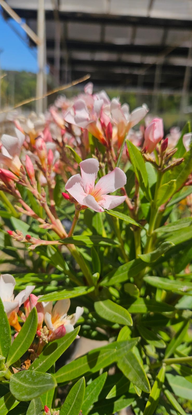 Arbusto de follaje denso y verde oscuro con flores rosas ornamentales; ideal para setos, borduras y jardines formales.