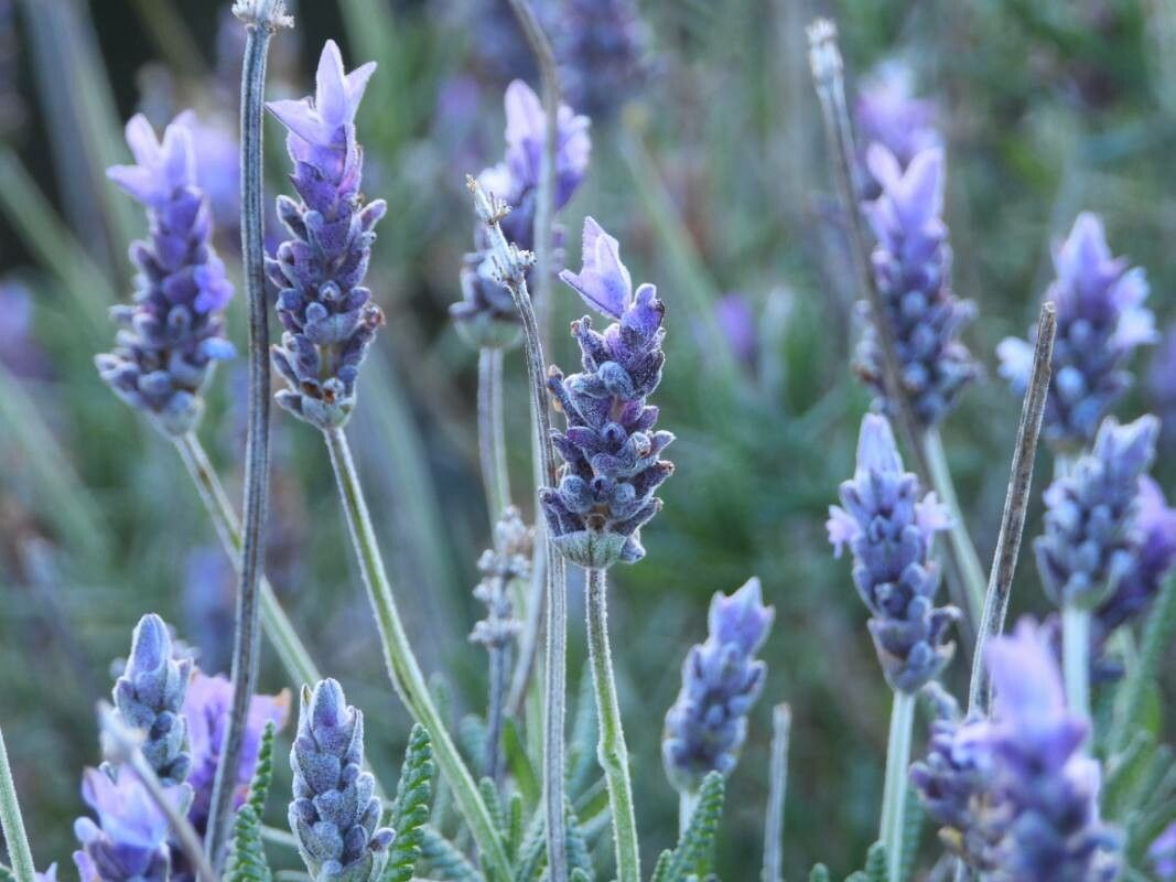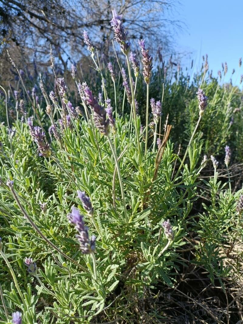 Variedad de lavanda con hojas dentadas y flores lilas; ideal para jardines soleados y aromáticos.