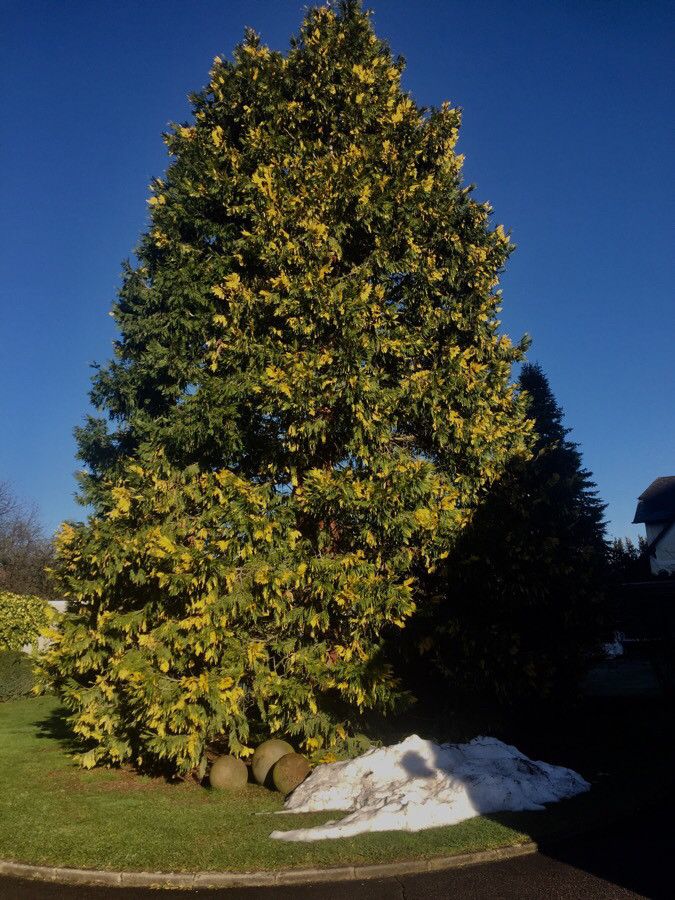 Conífera de porte piramidal y follaje perenne verde dorado, muy ornamental y resistente al frío. Ideal como ejemplar aislado o en grupos.