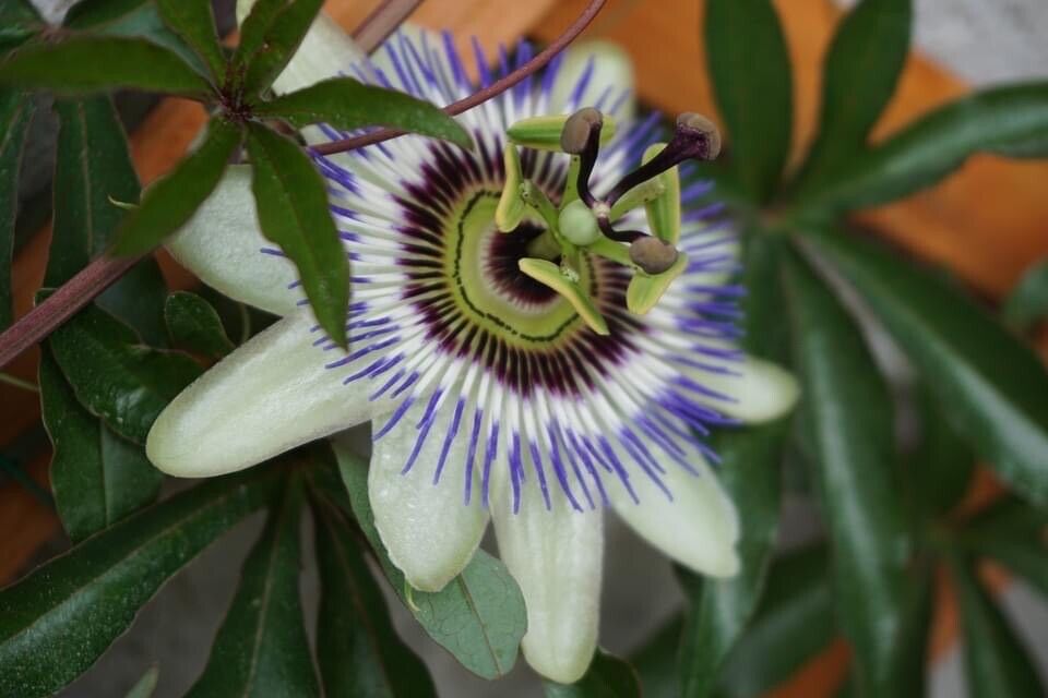Enredadera vigorosa de flores exóticas y aromáticas, que produce frutos comestibles conocidos como maracuyá.