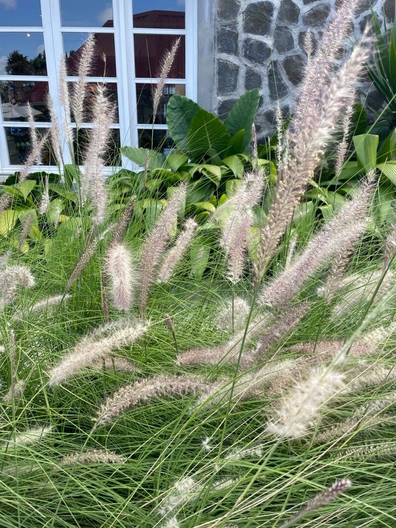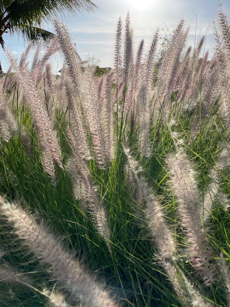 Variante con espigas suaves y plumosas; aporta textura y movimiento a macizos y jardines soleados.
