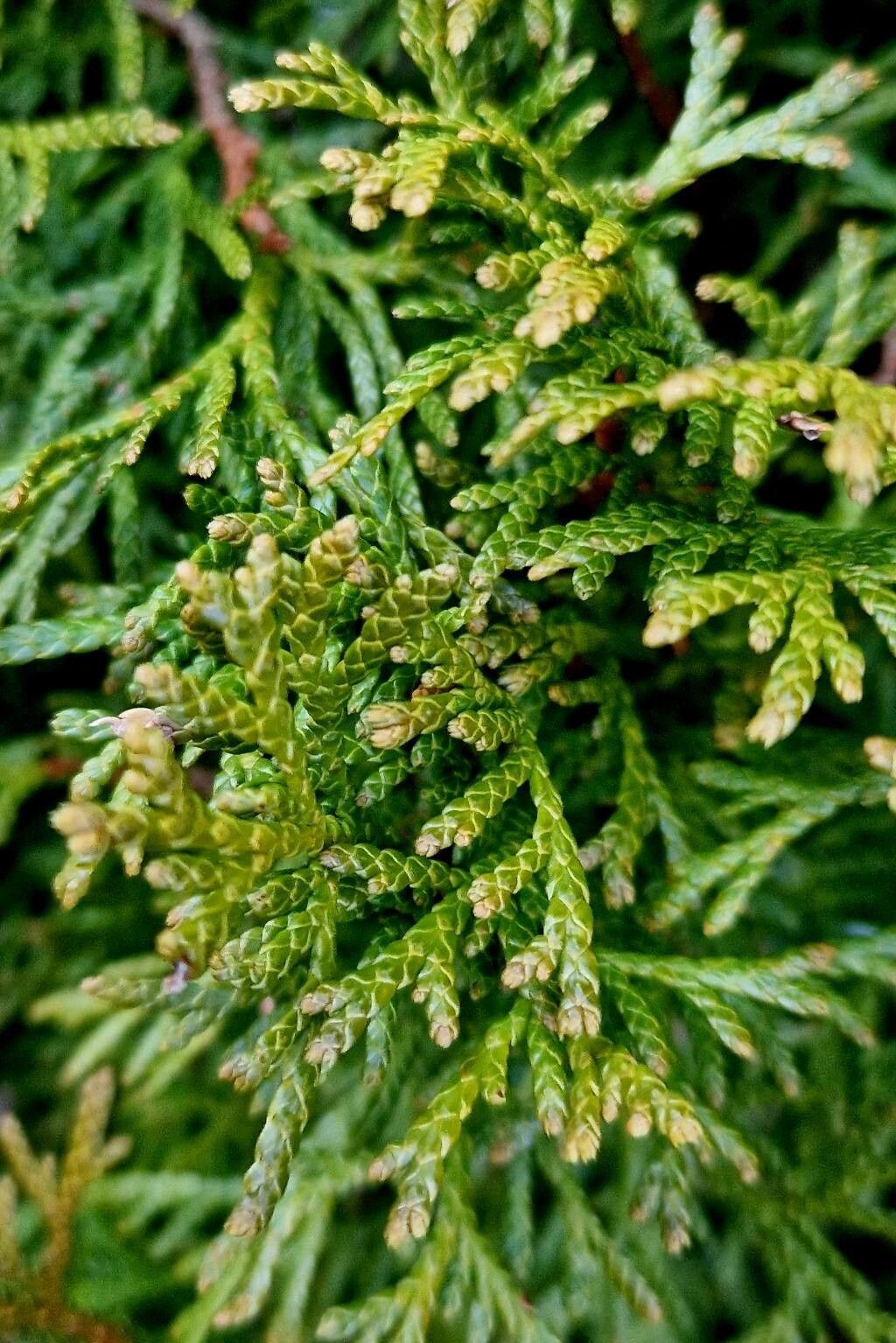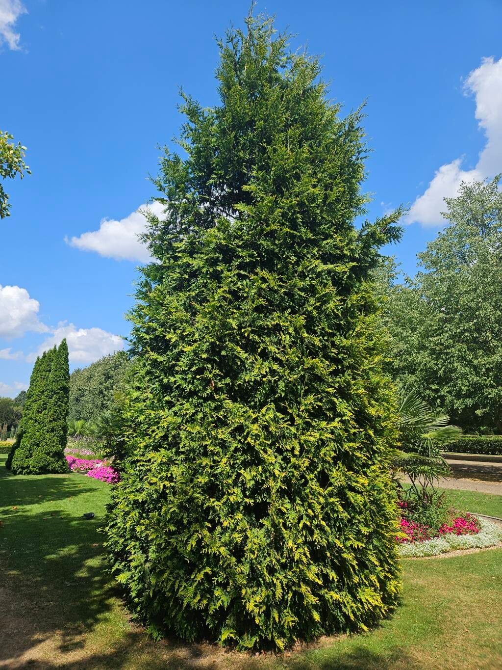 Conífera de porte columnar y crecimiento compacto, muy usada para cercos vivos y borduras formales. Follaje verde intenso todo el año.